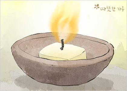 진흙으로 만든 그릇에 넣고 심지를 꽂은 뒤