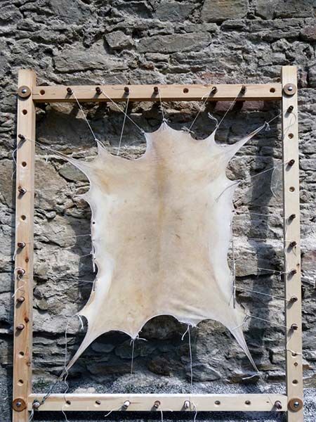 ▲성경 기록을 위하여 가죽을 무두질하는 모습.