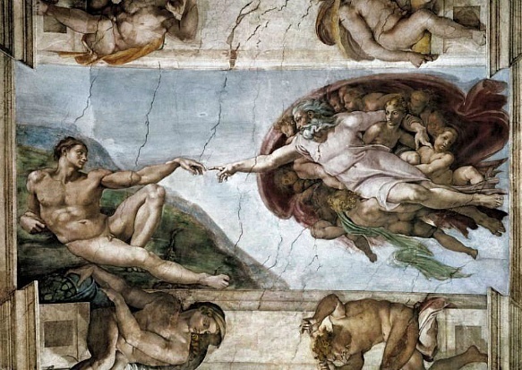 바티칸 시스틴 성당의 천정화 '아담의 창조'. 레오나르도 다 빈치 작