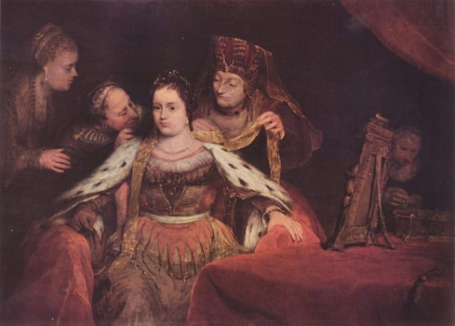 2. 분규, 절정, 결말 : 하만이 모르드개는 물론 그의 민족 유대인을 모두 멸하고자 함. 하만의 유대 말살 계획은 에스더와 모르드개를 통해 반전으로 전개됨.